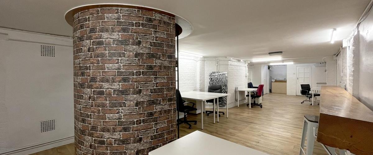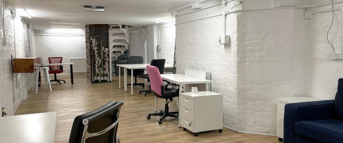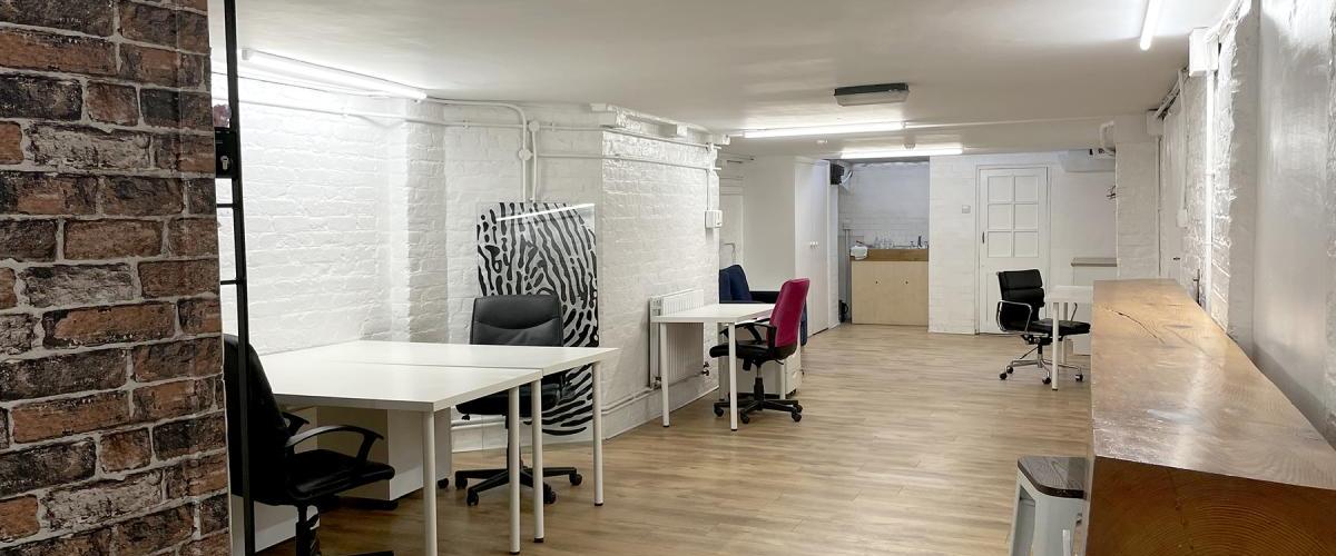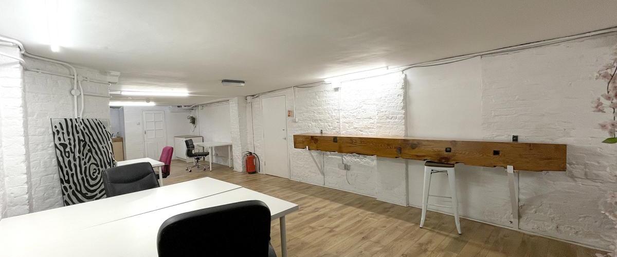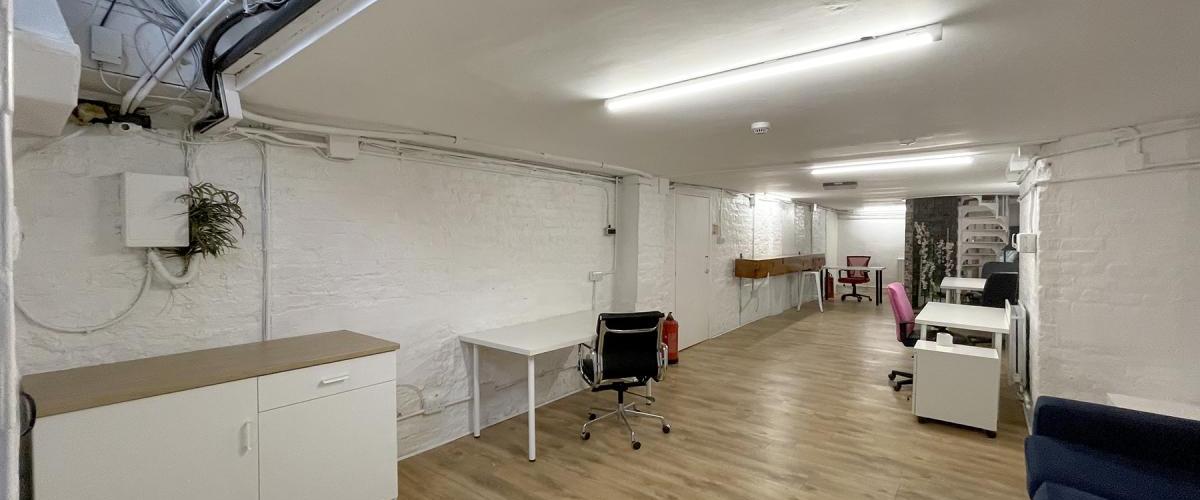 A surprisingly bright space for a basement! Natural light floods in at one end where there is also a sink and toilet.